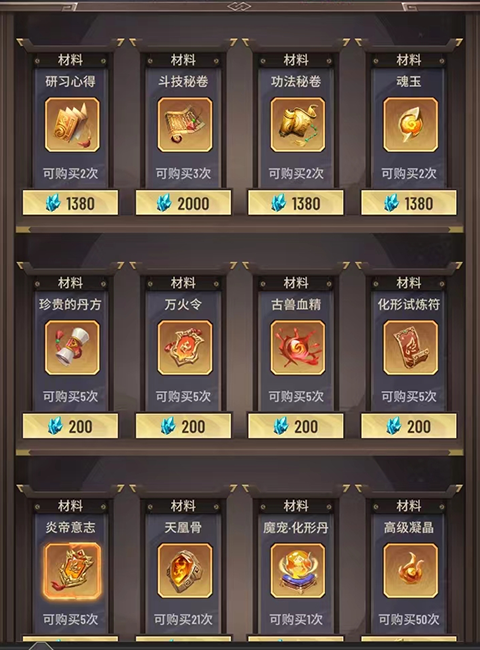 1、秘药和古龙香属于必入手的道具,可以用玉石刷1-2次,但后续价格过高不推荐频繁购买(氪金玩家随意)。大境界突破后,商店会刷新可再次购买。