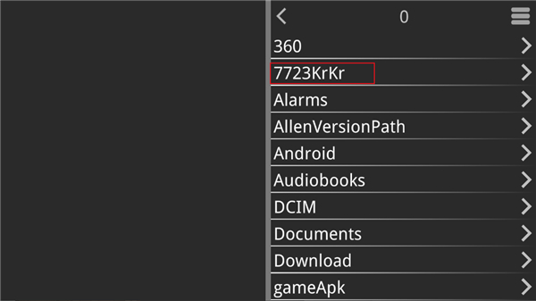 1、完成游戏安装后,先授予必要权限并解压相关文件,然后打开设备中的7723KrKr文件夹。