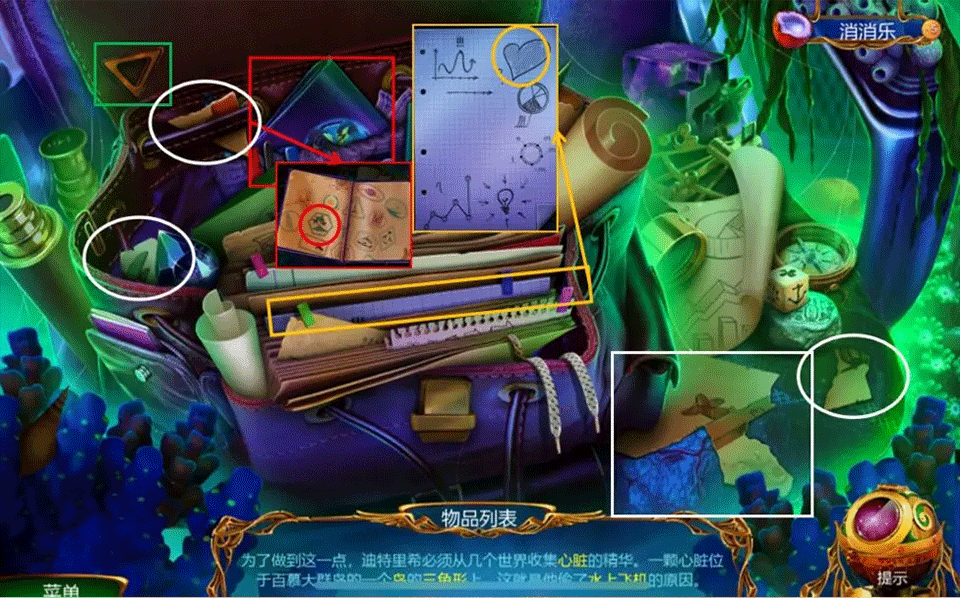 橙框:心脏线索,展开纸张并点击标注位置。