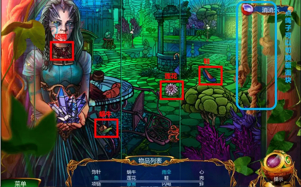 点击画面右侧的绳索即可切换至下一视角,用于推进后续解谜。