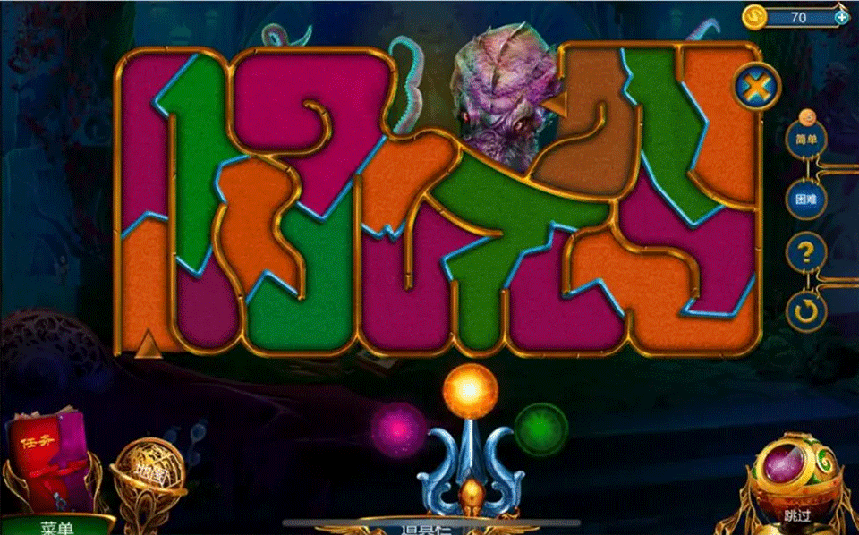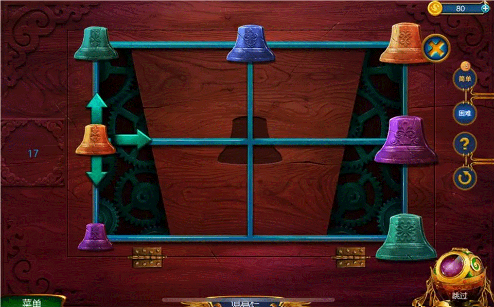 2、吞噬紫色铃铛后向下移动,再把橙色铃铛拉至当前位置。