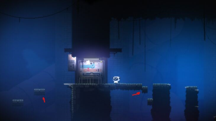 收音机后向左继续,你会发现一个Sheepy会掉落的洞口,然后向右移动。走出隧道后,你会找到下一个房间。它相当简单,右墙有三个台阶,并有一个平台通向房间的上层区域。