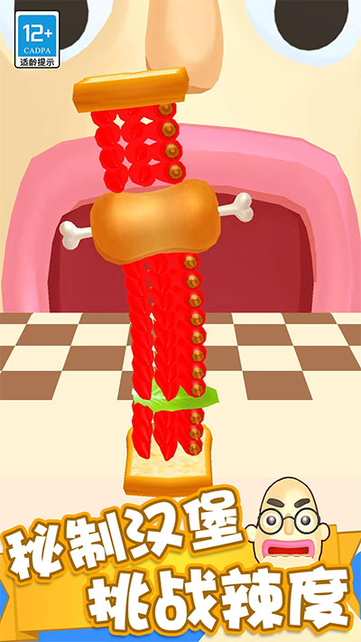 疯狂冲冲冲是一款魔性的类跑酷+美食制作游戏,游戏画风恶搞,玩法轻松有趣,在这里玩家需要通过自己的操作,收集一路上的各种食材,制作各种汉堡,到达终点让角色吃下,角色会根据你制作的美食表现出不同的表情,从而获得不同程度的评分。赛道中有着超级魔鬼椒、丰富的蔬菜、精选的肉类以及形形色色的可食用配料。玩家需要通过这些食材,荤素搭配制作出高评分的美味食物,测试你的料理能力。但是也需要注意赛道中也有着许多潜在的“危险”!譬如超级魔鬼椒、废弃的过期食材和海克斯科技!如果不小心添加过多的魔鬼椒,这一分汉堡可能会让你的顾客热度上头!如果不小心添加到了海克斯科技或废弃食材,小心顾客吃坏肚子的投诉!简单的操作,有趣的内容,可以帮助你释放一天的压力。