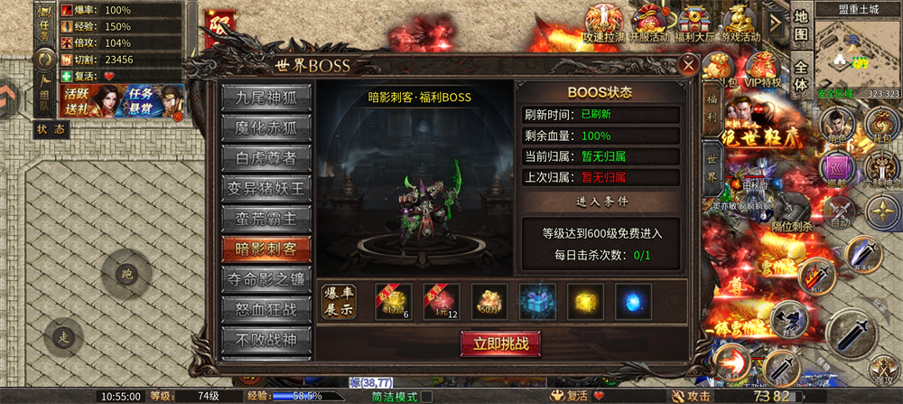 进入条件:等级达到600级免费进入