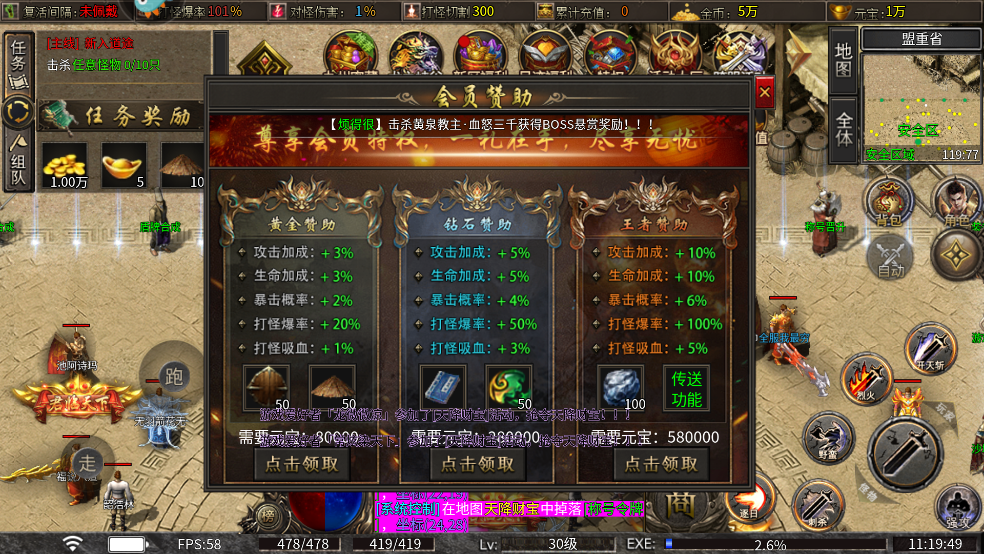 1、满屏BOSS,狂暴之力,无限打金