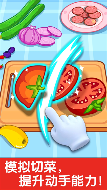 宝宝小厨房是宝宝巴士出品的一款专为2-6岁儿童打造的厨艺启蒙手游,兼具趣味性与教育性。游戏提供十多种卡通食材和丰富厨房操作方式,孩子可以自由切、炒、煮、榨汁,在轻松的操作中认识蔬果、体验烹饪。采用蒙台梭利教育理念,强调自主探索、动手实践与创造思维,Q萌画风和可爱角色更让孩子爱不释手。没有复杂规则、不设失败机制,游戏节奏温和、安全无广告,是家长放心、孩子开心的早教精品游戏。