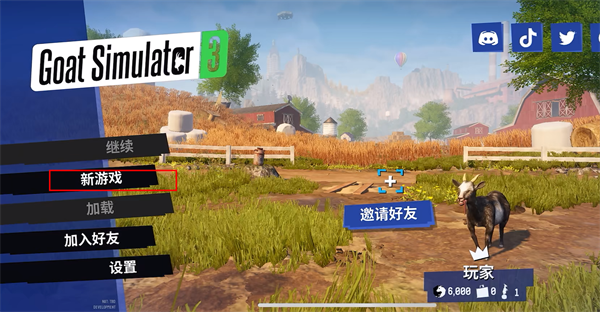 1、在本站下载“模拟山羊3手机版”安装后,点击“新游戏”