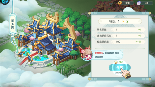 操作:金币充足时立即升级,繁荣度是宗门进阶核心,优先提升核心建筑等级。
