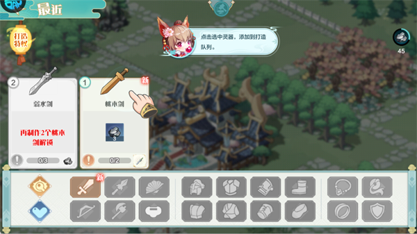 操作:优先收集材料打造桃木剑,完成解锁任务,开启法宝打造基础线。