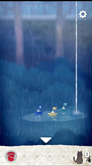 2、来到下方界面后,点击获取红色水桶,然后在道具栏中点击水桶,放到滴水处,盛满水桶,然后小船的颜色以及数字也记住等下要用