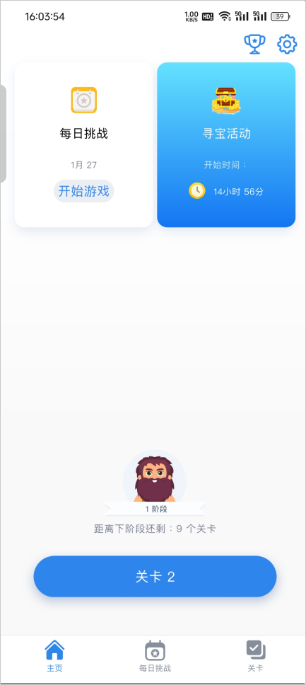 1、进入游戏主界面后,点击底部的关卡入口即可开启挑战;