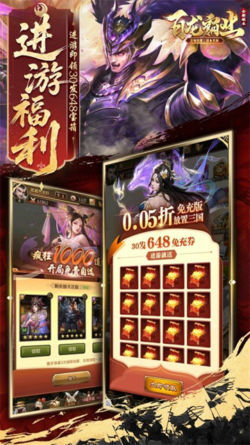 ★【千抽大礼】进游就送1000连抽,自选武将任你挑,开启你的辉煌三国之路,一统江山不是梦!