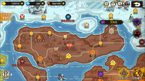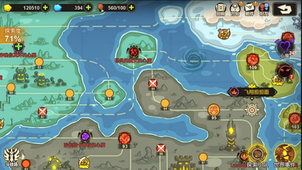推图系统放置在游戏的大世界地图上,大部分关卡的前置关卡非唯一,只要前置关卡节点已经开启,并且探索者等级到达该关卡等级要求。玩家便可以自由挑战任意开启了的关卡节点。通关140关后会自动开启二周目关卡,玩家可从二周目第1关开始继续挑战。开启二周目后,可以通过一周目和二周目按钮对关卡地图进行切换。二周目的关卡强度会大大地提升,每一关有两波怪兽,需要更多的策略性思维,更具有挑战性。