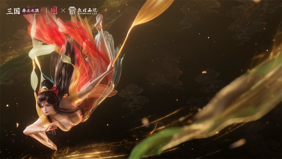 本次《率土之滨》×敦煌画院联动,则将敦煌壁画艺术中经典的“飞天”形象与率土武将【5星·吴·大乔】结合,推出全新可变双形态动态画像【飞天梦华】。诚邀各位主公于2月16日(除夕)莅临新春庆典的现场,共同欣赏大乔化身敦煌飞天的梦幻云舞。