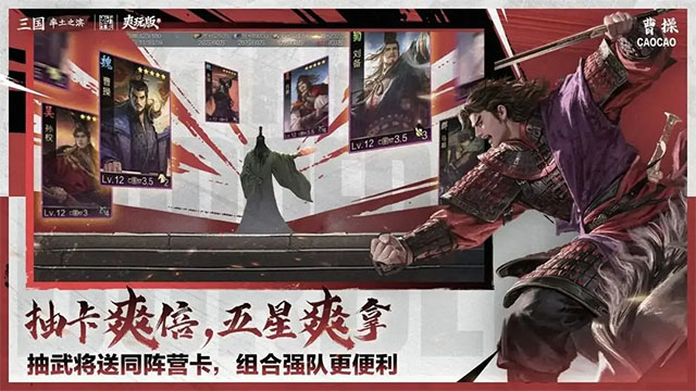三百位三国名将,自由建军,多维深度养成。三百位三国名将、数百战法多样组合;武将属性、阵营羁绊相辅相成,部队兵种相生相克。没有最强的军队,只有谋略更高的统帅!
