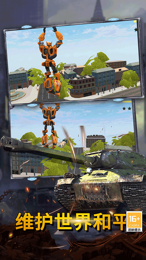 3、玩家扮演一位机甲人,可以在机器人和豪车形态之间切换。