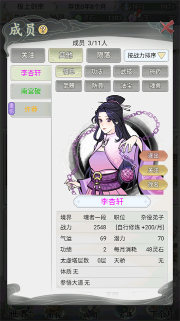 3、招收弟子,广开山门!排劣存优,将你的门派发扬光大!